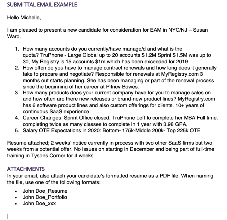 You sourced for what seemed like hours, you reviewed more resumes than you care to count, you pre-screened dozens of individuals, and you conducted interviews, asking hundreds of questions. Congratulations, it is now time to submit your candidate. Follow the steps outlined in this section when submitting a candidate to the Account Manager.